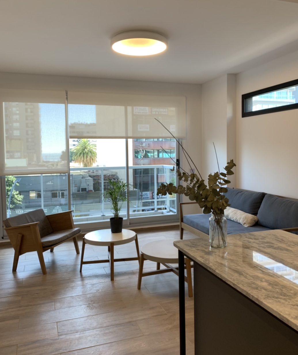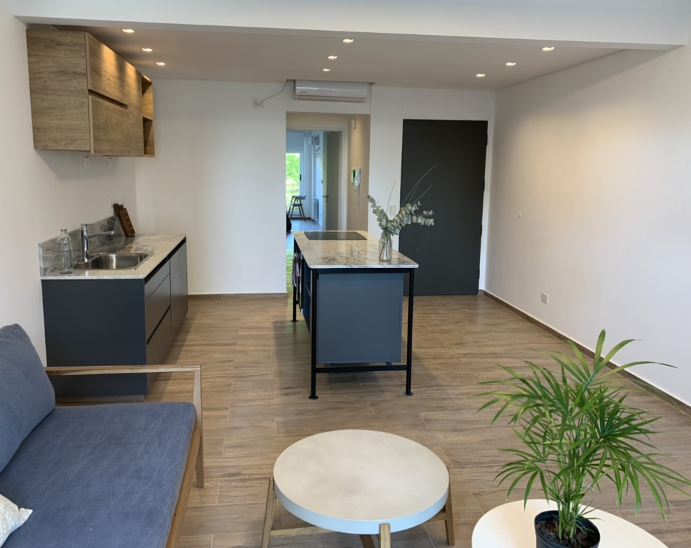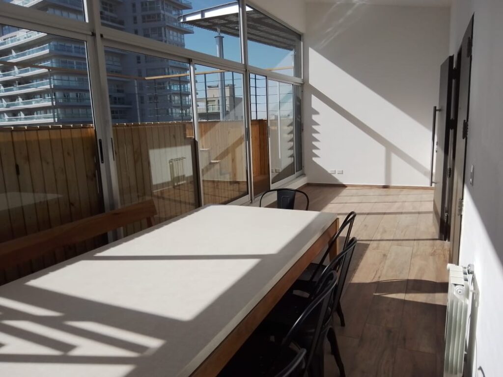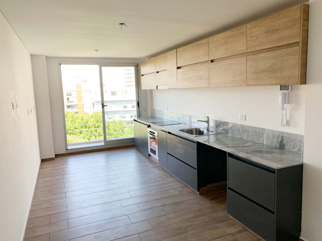 - Pisos en estar, cocina y dormitorios, porcelanato símil madera marca Ilva.