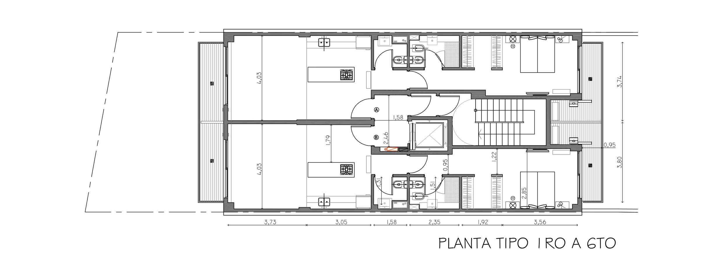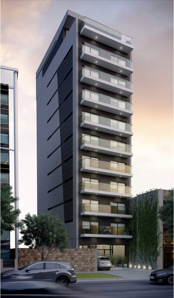 15 Departaments distribuidos en 9 pisos, de los cuales 12 son semipisos y 3 son pisos de 3 ambientes. Todos con balcones al frente y al crontrafrente. Piscina en piso 10. Parrilla y Sum. 11 Cocheras distribuidas en 2 subsuelos.