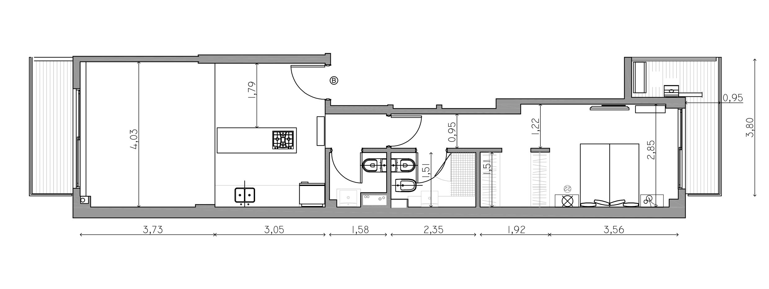 - Mesada de cocina en mármol carrara.
